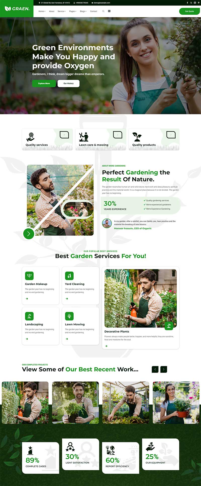 响应式绿色园林花艺前端网页模板,将自然绿意融入设计,自适应屏幕,精致展现花艺之美,为园林花艺网站搭建提便捷方案。